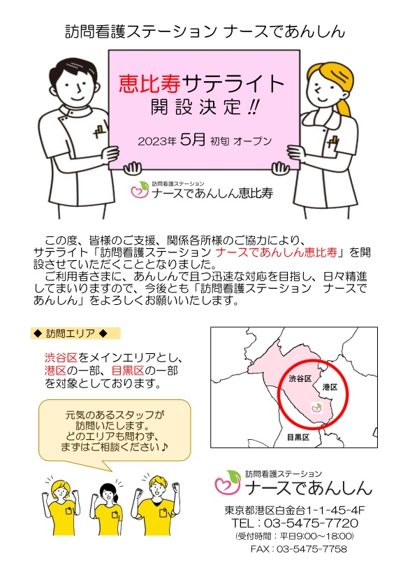 news訪問看護ステーション ナースであんしん恵比寿 開設のお知らせ2023.04.17